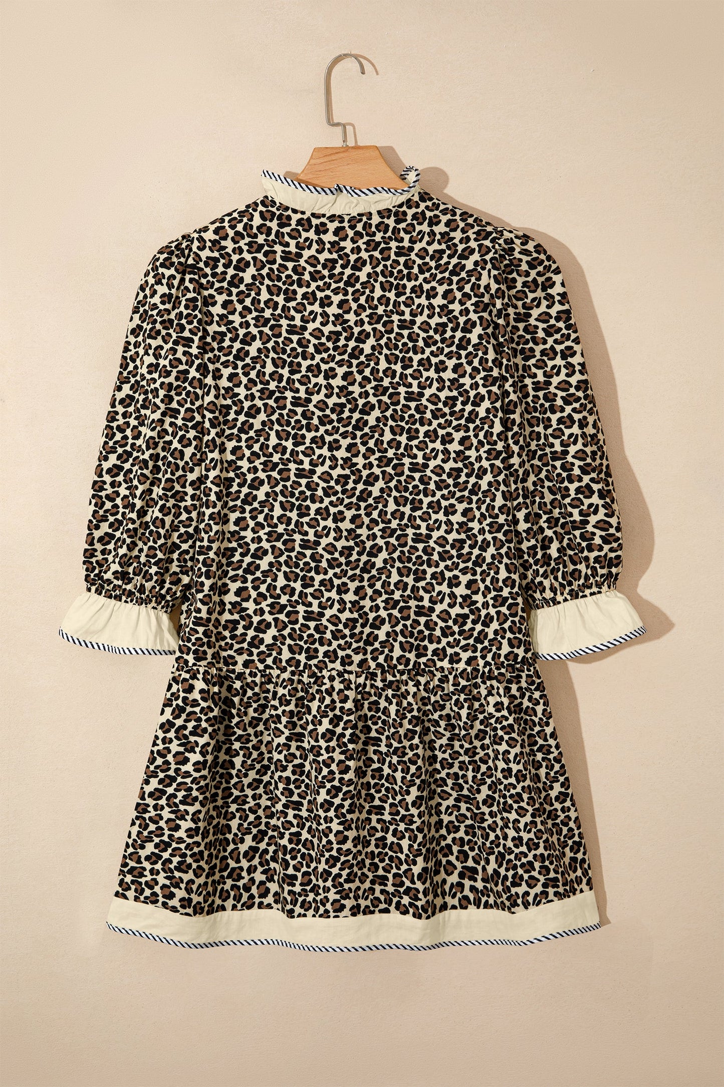 Dress in Bridget Bracelet Sleeve Mini Dress when you want a relaxed fit that still feels polished. Striped color block trim adds modern contrast to this leopard print dress. V neck design creates a flattering neckline for casual or dressy occasions. Bracelet sleeves offer elegant coverage with a relaxed, feminine silhouette. Leopard print delivers bold style for trendy everyday outfits.