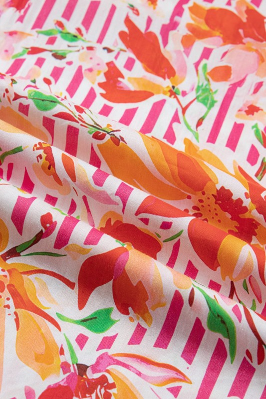 Discover effortless charm in this enchanting floral stripe mini dress, a boutique essential that captures the spirit of carefree elegance. The delicate tie neck and romantic puff sleeves frame the face beautifully, while the babydoll silhouette offers a flattering, feminine fit. Crafted in breathable cotton, this piece transitions seamlessly from weekend brunch to garden gatherings, bringing a touch of whimsy and color to every occasion. 100% Cotton