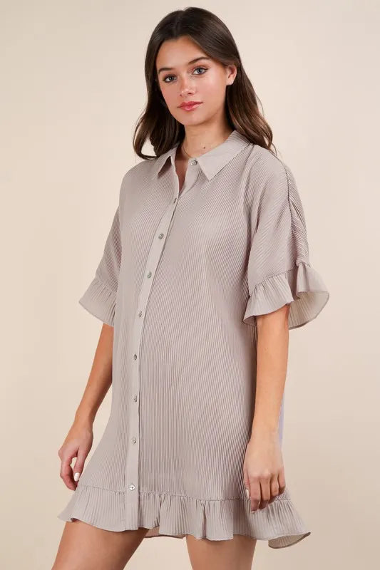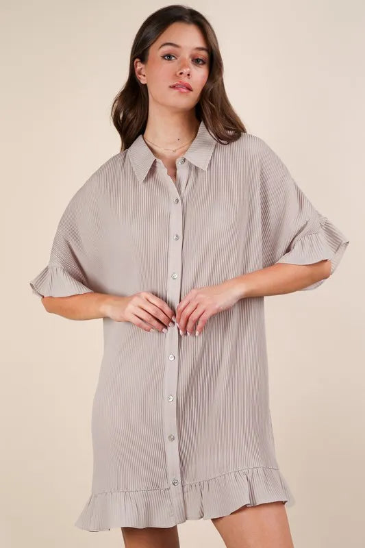 Click here to be notified by email when Pleated Detail Button Down Mini Dress - Nude / S becomes available.