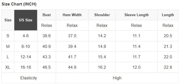 See size chart for approximate measurements
