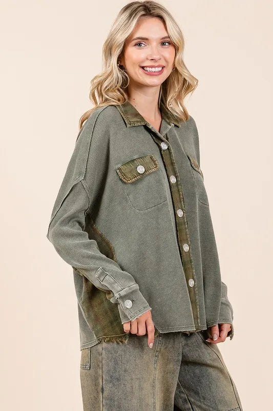Mineral Washed Plaid Button Down Shacket