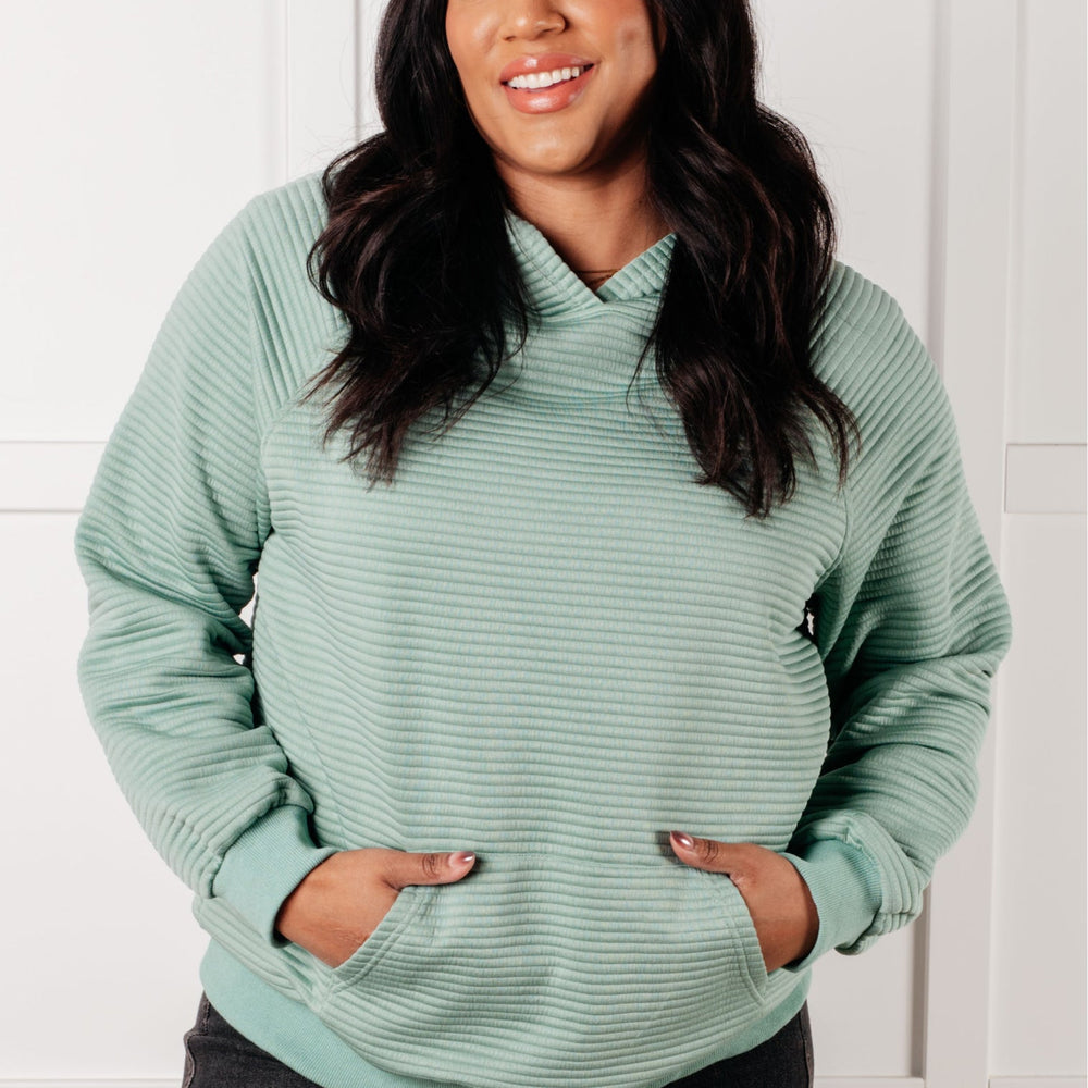 Get cozy with our Crosswalk Textured Hoodie in Green! Made from a textured knit, this top features a hood and raglan sleeves for a comfortable fit. The banded, ribbed sleeve cuff and hemline add extra style and warmth. Perfect for a casual and playful look.
