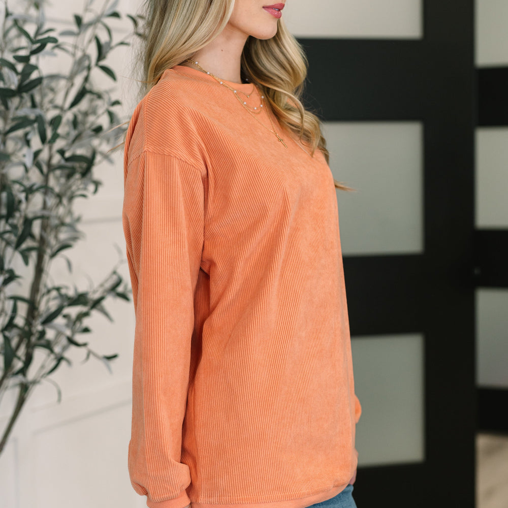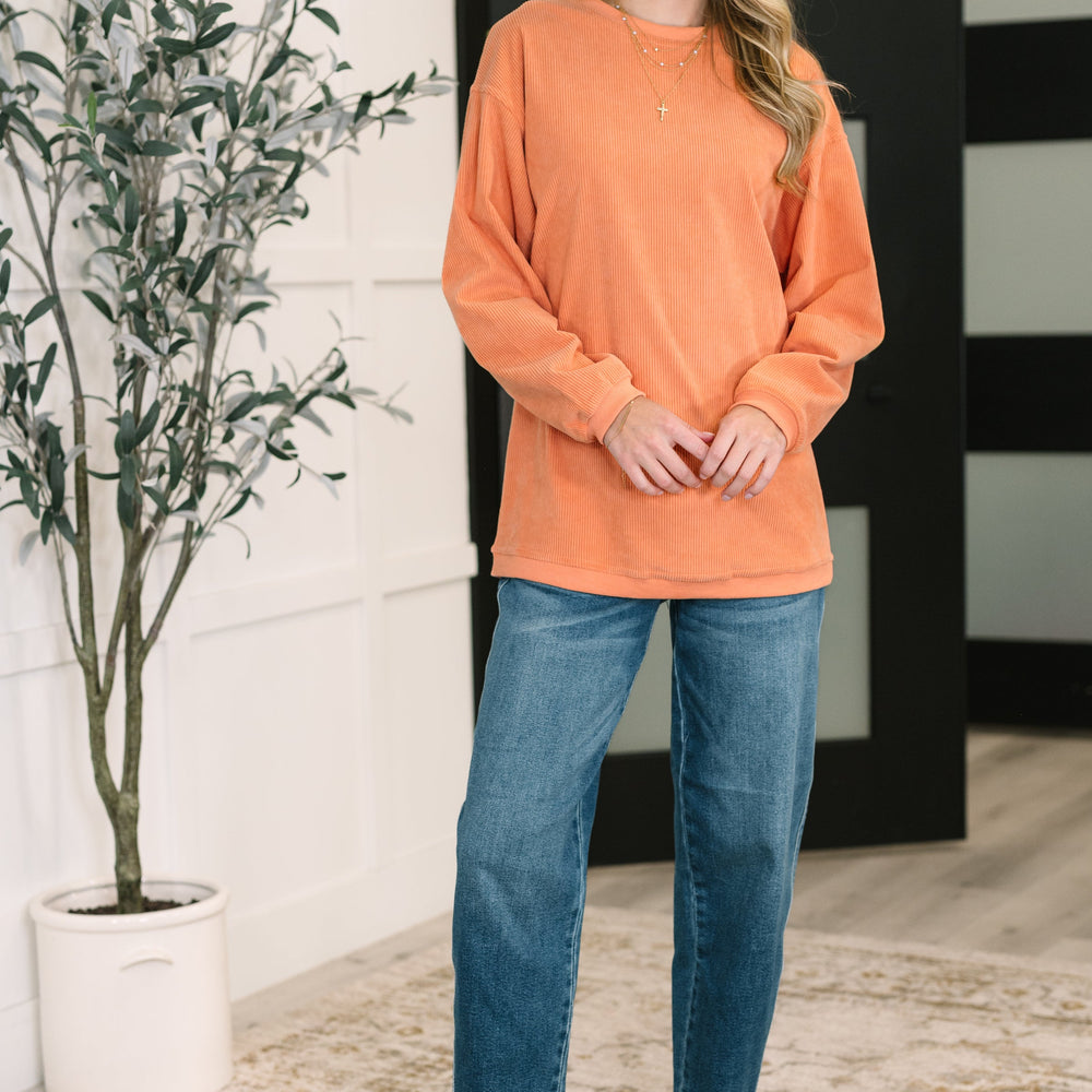Cozy up in the Taking A Drive Oversized Corded Sweatshirt, where stretchy corduroy meets relaxed, playful vibes. Featuring a banded, ribbed round neckline, drop shoulders, and ribbed cuffs and hemline, this sweatshirt keeps things comfy and cute. Perfect for those laid-back days when you want to feel snug without sacrificing style.