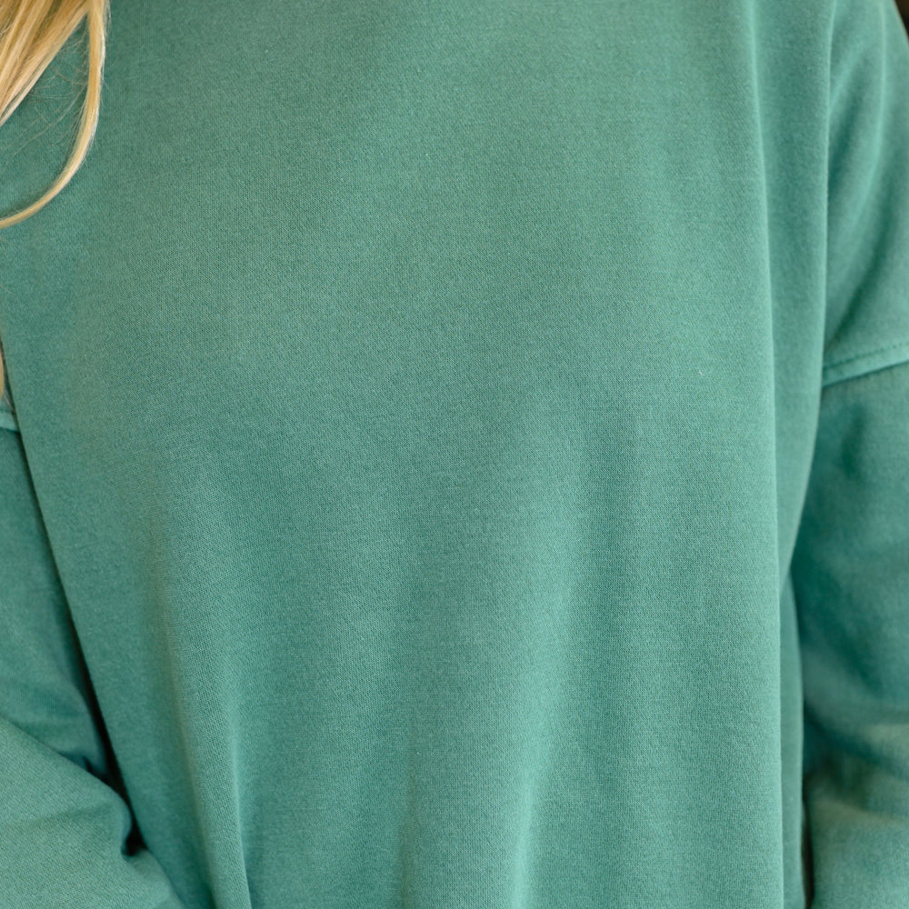 Talk Cozy to Me Stepped Hem Pullover in Dark Green