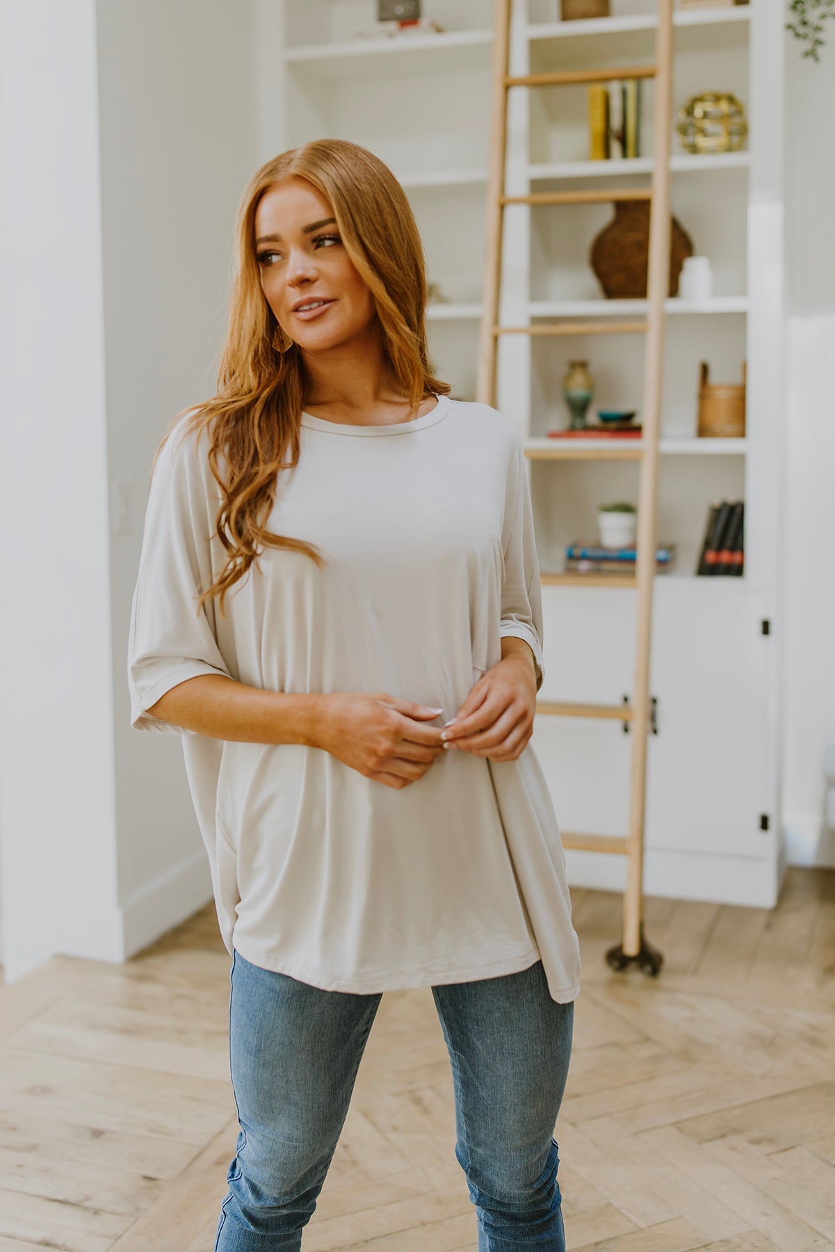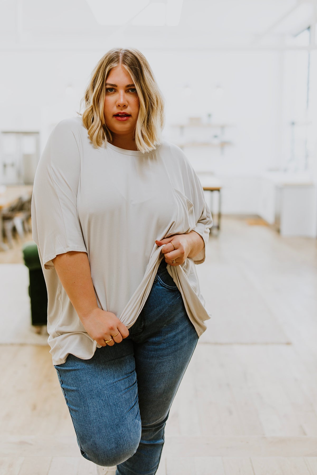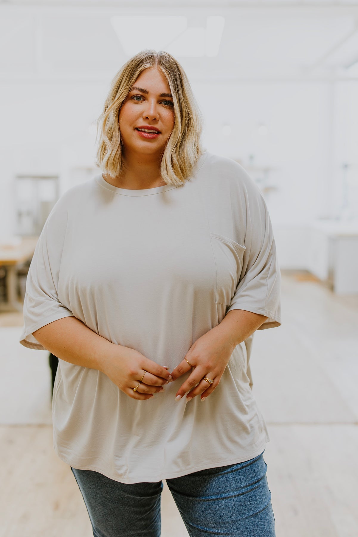 Effortlessly elevate your casual wardrobe with the Effortless Looks Oversized T-Shirt! Made from soft rayon jersey knit, this t-shirt features an oversized fit, dolman sleeves, and a patch pocket for a relaxed yet stylish look. Perfect for lazy days or running errands, this t-shirt is a must-have for any effortless fashionista!