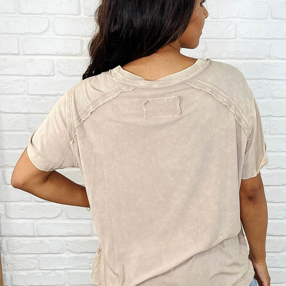 Easy Style Basic Mineral Wash Top in Ash Mocha