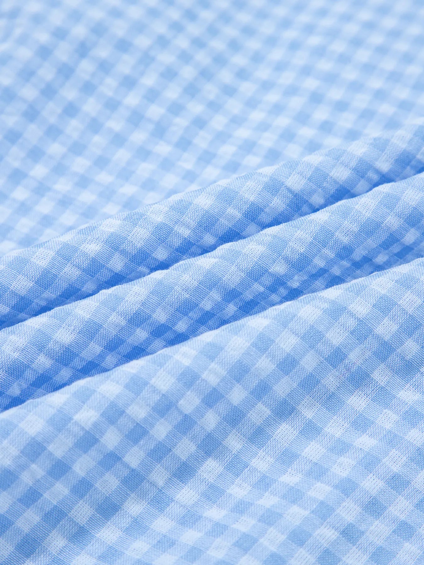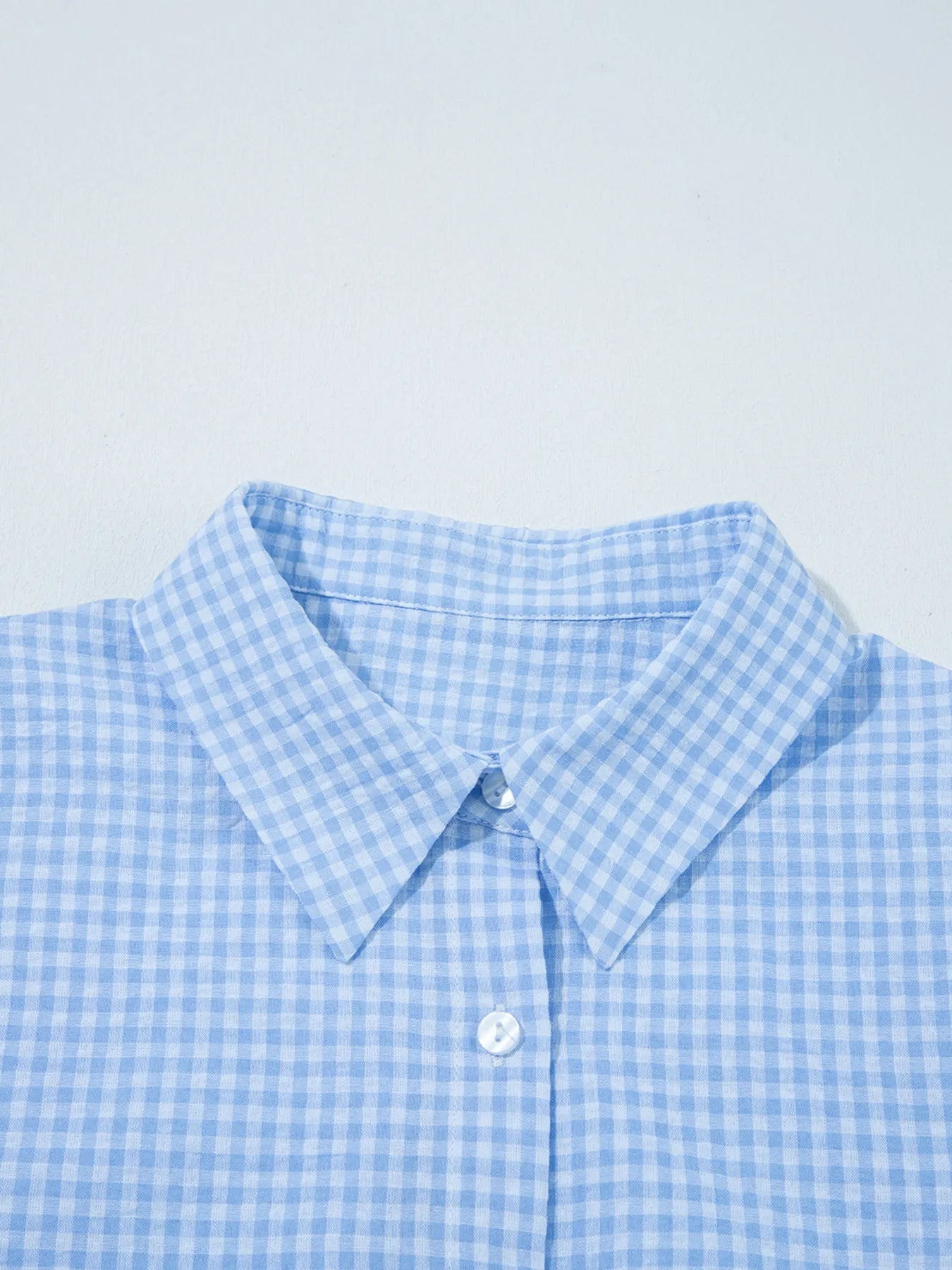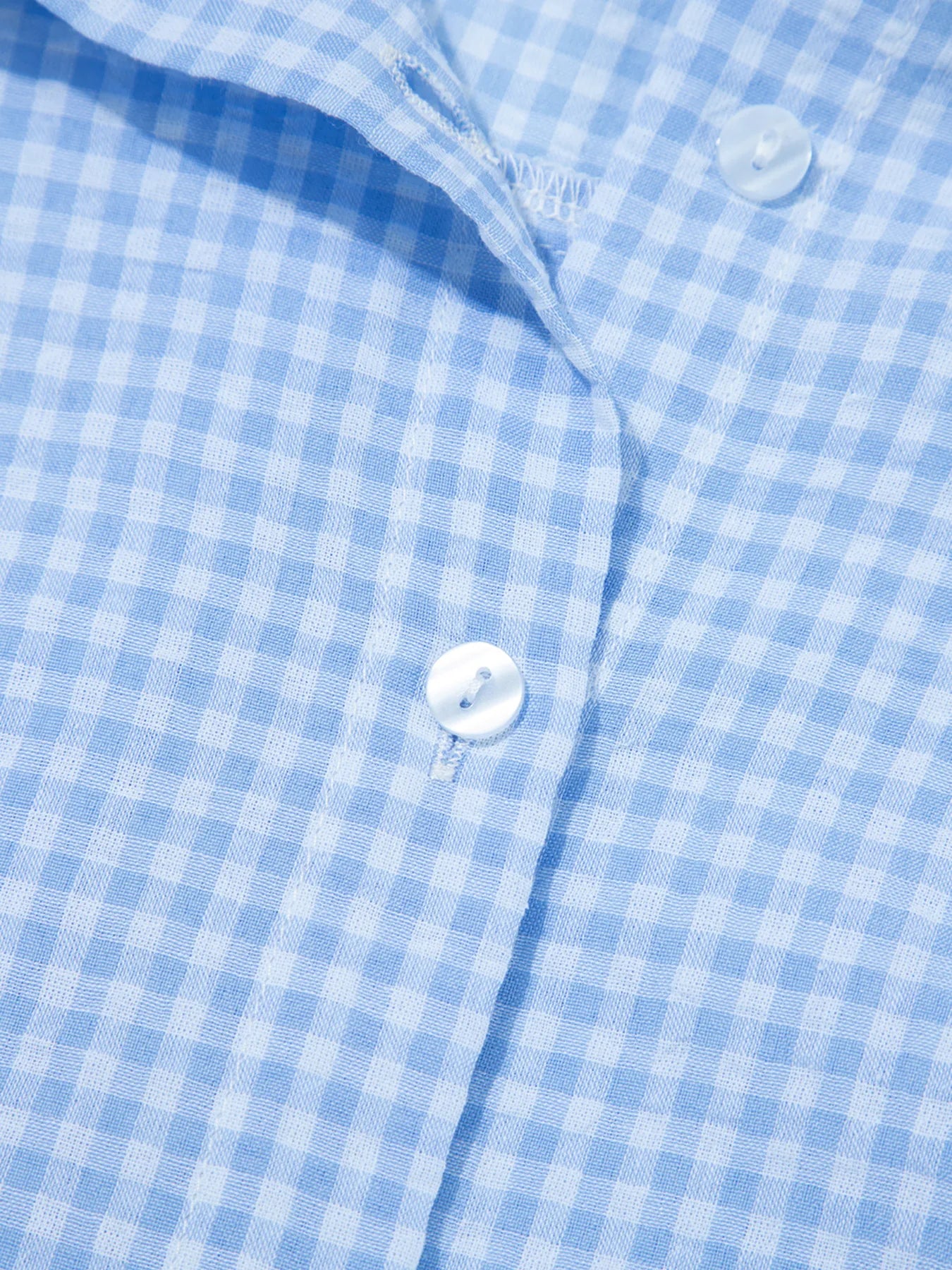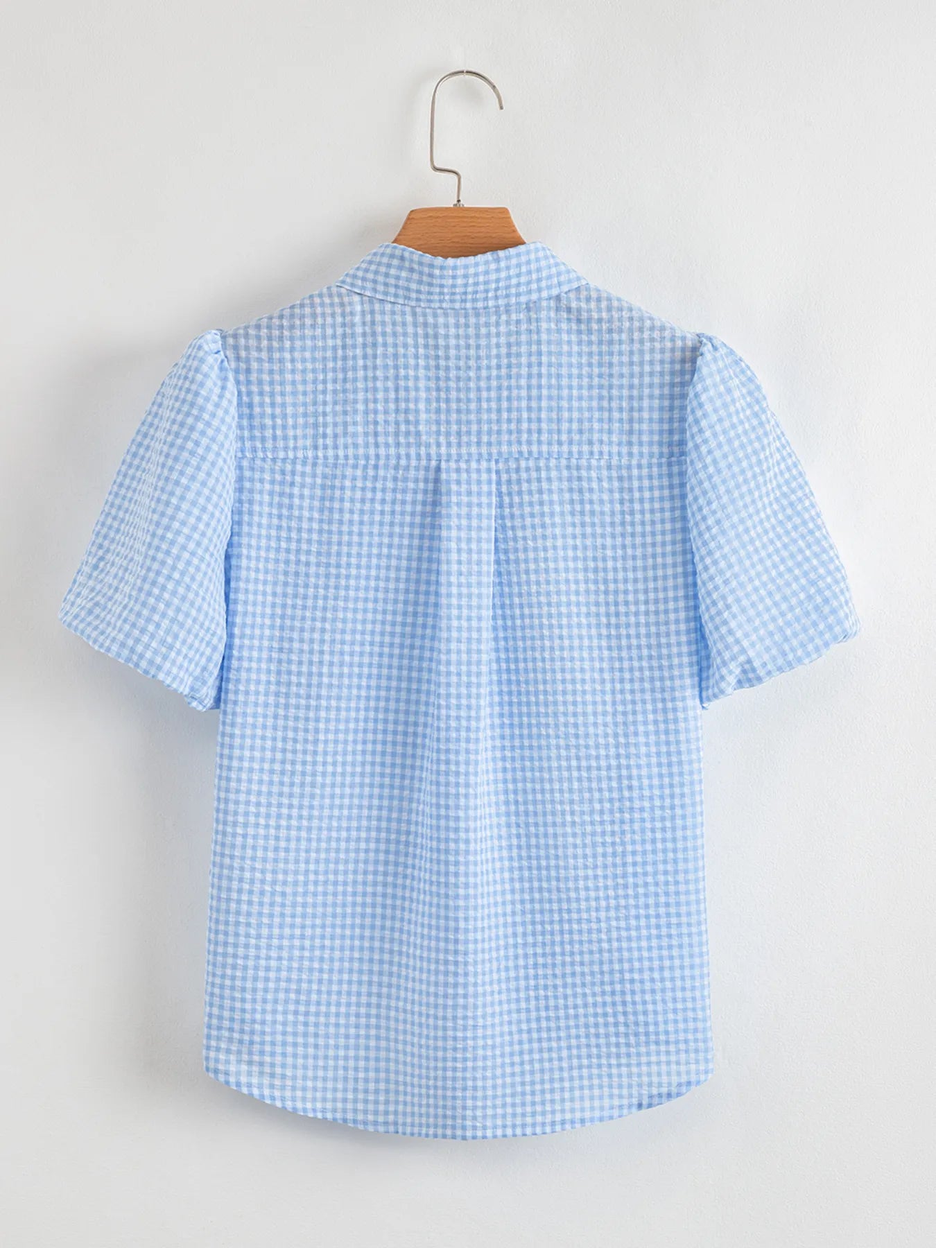 Click here to be notified by email when Gingham Print Puff Sleeve Button-Up Top - Light Blue / S becomes available.