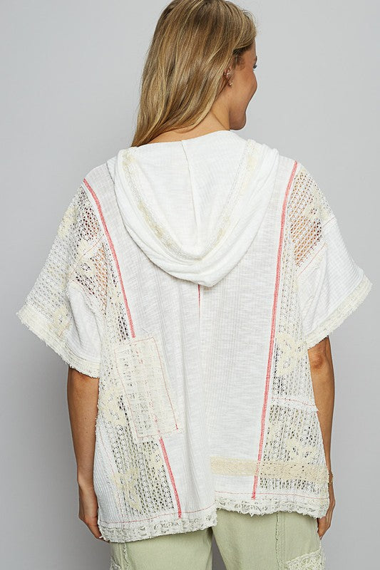The Lace Patchwork Half Sleeve Hooded Top is a trendy and stylish piece with a unique design. Featuring lace patchwork detailing, it adds a touch of femininity and elegance to the top. The half sleeves and hood add a casual and chic vibe to the overall look. This top is perfect for adding a fashionable twist to your casual outfit, providing both style and comfort. Great for layering or wearing on its own, it is a versatile and fashion-forward choice.