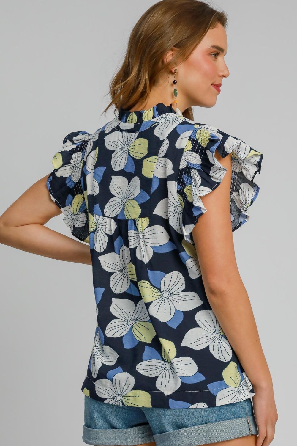 The Floral Print Ruffled Cap Sleeve Babydoll Blouse is a charming and feminine top that is perfect for adding a touch of romance to your wardrobe. This blouse features a beautiful floral print, delicate ruffled cap sleeves, and a flattering babydoll silhouette. It is a versatile piece that can be dressed up or down for a variety of occasions, adding a sweet and stylish flair to your outfit.
