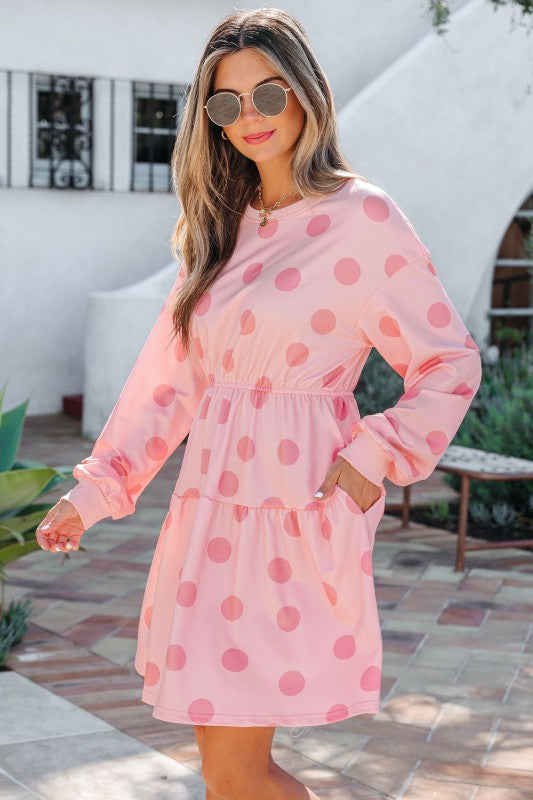 Keep it simple in Anna Sleeve Flared Mini Dress—an easy favorite you’ll keep in regular rotation. This cute dress is stylish with a polka dot pattern. Made from durable polyester with medium stretch. Featuring long sleeves and a playful flared bottom. The casual, cute mini dress is well-received by all ages.