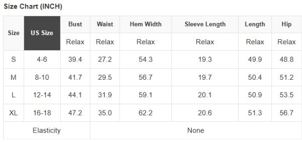 See size chart for approximate measurements