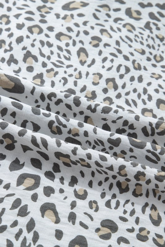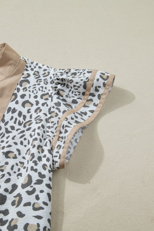 Leopard Patchwork V-Neck Cap Sleeve Blouse