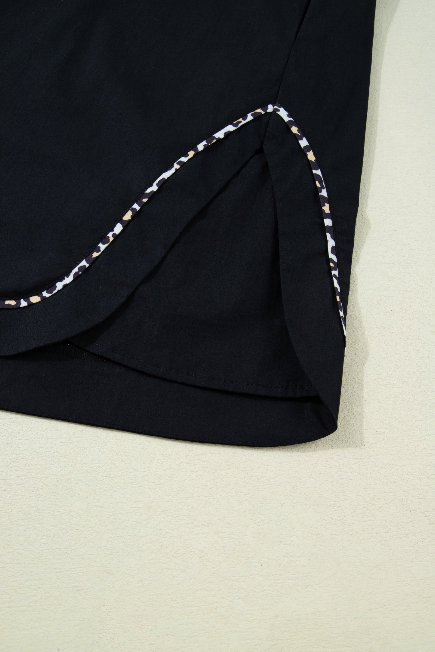 Slip into Ruth Sleeve Shift Mini Dress—soft, easy, and perfect for busy days on the go. The leopard trim gives instant chic with a fun twist! This shift dress pops with bold puff sleeves. The relaxed fit silhouette is flattering and comfy. This versatile dress is suitable for different social occasions.